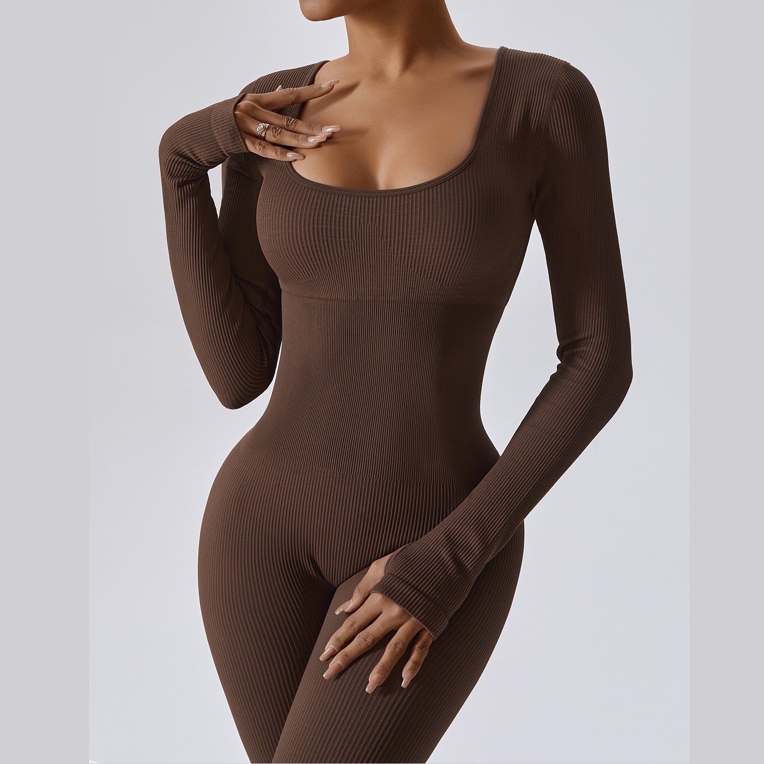 Bodysuit Women Seamless Jumpsuit Long Sleeved Pants Yoga Fitness One-piece Suit High Waist Hip Lifting Jumpsuit